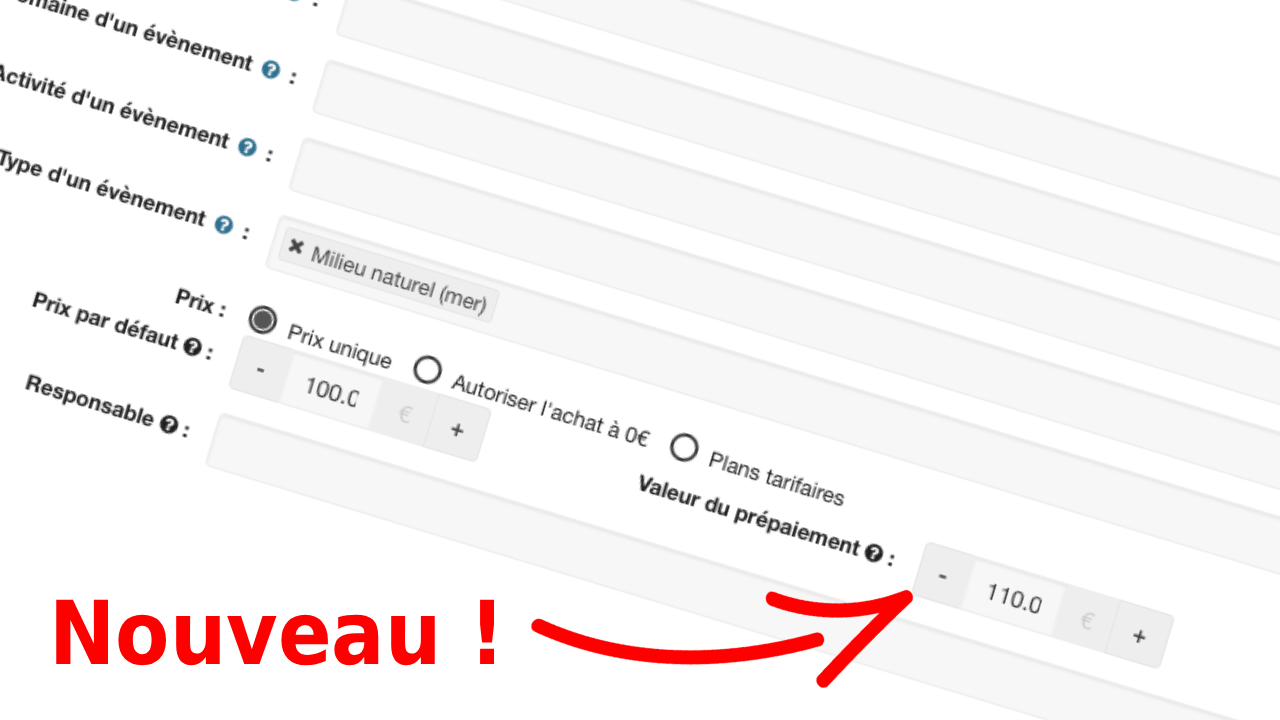 Nouveau ! Définissez un montant différent pour les cartes prépayées et séparez clairement le paiement des prestations du prépaiement des inscriptions aux événements.